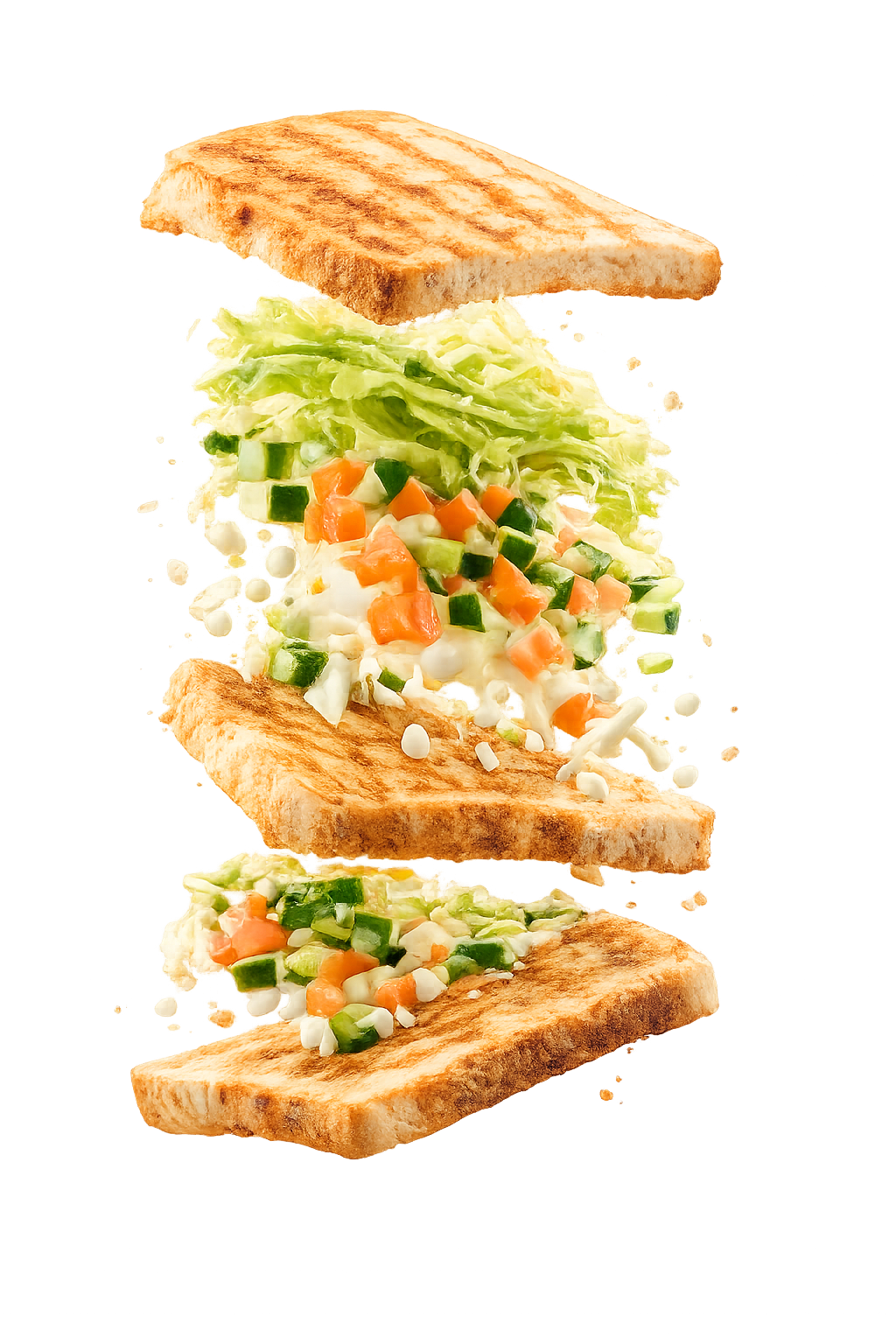 Golden grilled Sattvic sandwich layered with fresh vegetables and balanced spices.
